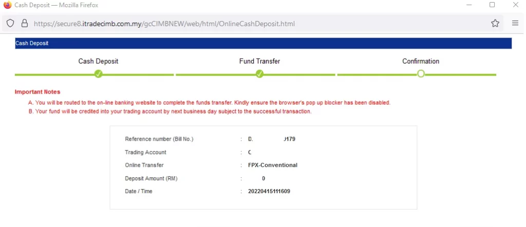 CGS CIMB iTrade 入金注意事项