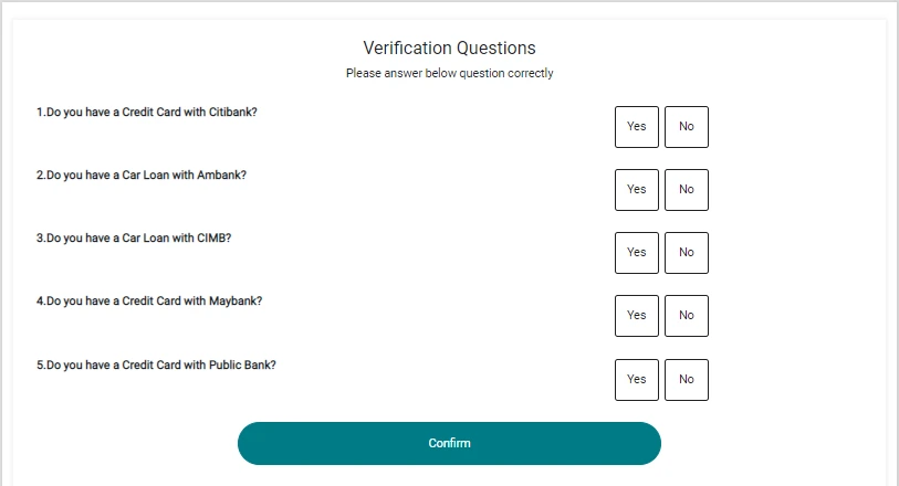 接着,你需要回答安全提问。此系列问题将依个人银行资料而显示不同的问题。