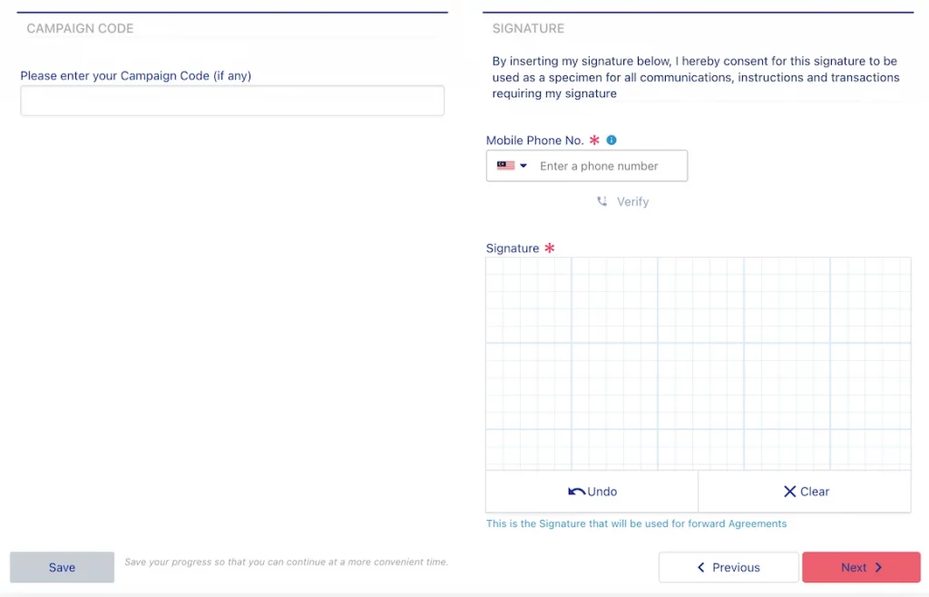 你只需要在页面的最下方,输入你的手机号码,把短信 OTP 号码输入到系统,并且签上名,就可以点击「Next」。
