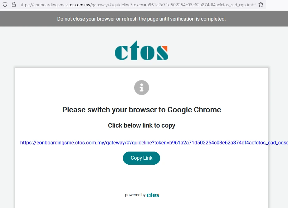 点击 eKYC 验证链接之后,若不是使用 Google Chrome,将会出现以下的页面。