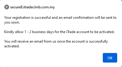 在成功登记账户的1-2个工作日后,CGS CIMB 将会电邮通知你的账户已被开启。